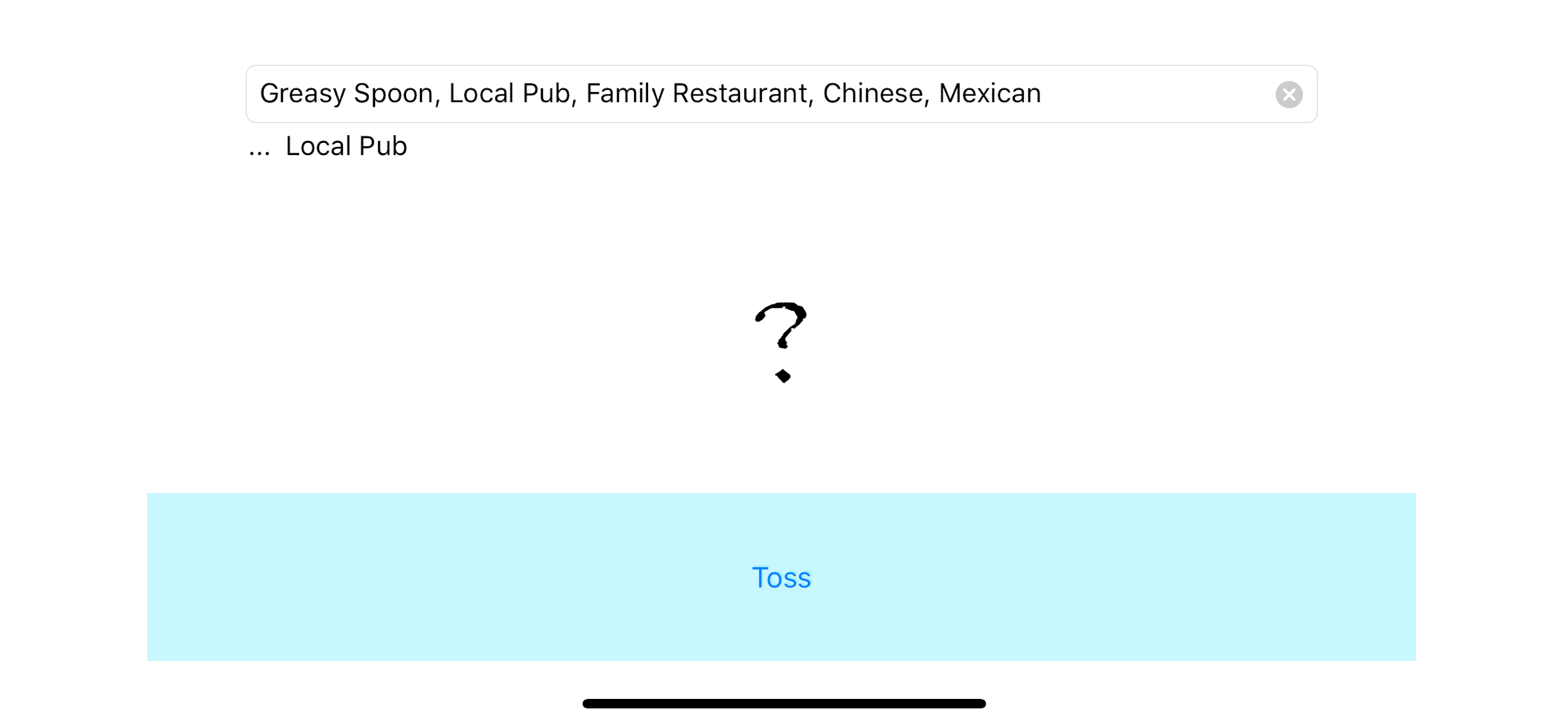 iToss Randomizer knows some English words too. Try things that can be tossed. If iToss Randomizer doesn't know the word, it might let you decide.