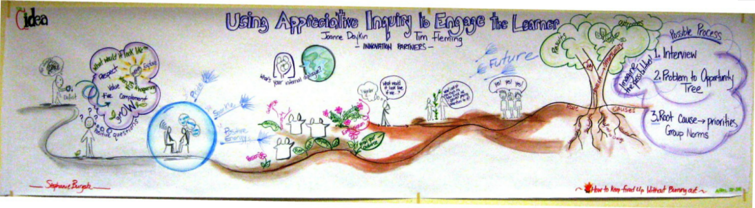 I can help guide your group through a strategic update, or with a whole new plan staring from the ground up. My experience is that a graphic facilitation approach (using an Appreciative Inquiry type of structure along with recording simultaneously recording) is an effective way of encouraging participants to see where they are, and where they want to be going. I am happy to talk about graphically facilitating for your group, or working with another facilitator, recording while they guide the group through the process.